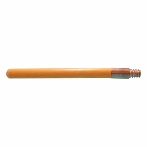 Selected hardwood with clear lacquered finish. One end rounded and other end equipped with crimped-on metal thread to fit standard floor brush blocks.