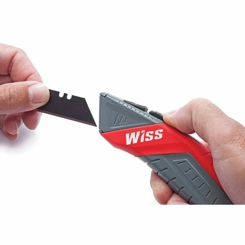 The Crescent Wiss Auto-Retracting Safety Utility Knife retracts automatically when cut is complete; accepts all standard utility knife blades with a quick blade change; and comes with three black-oxide coated blades.