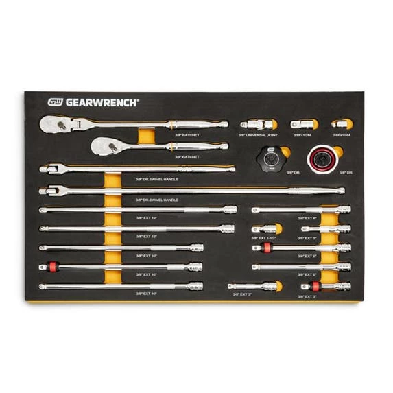 21 Pc. 3/8″ 90-Tooth Ratchet & Drive Tool Set with EVA Foam Tray 86521