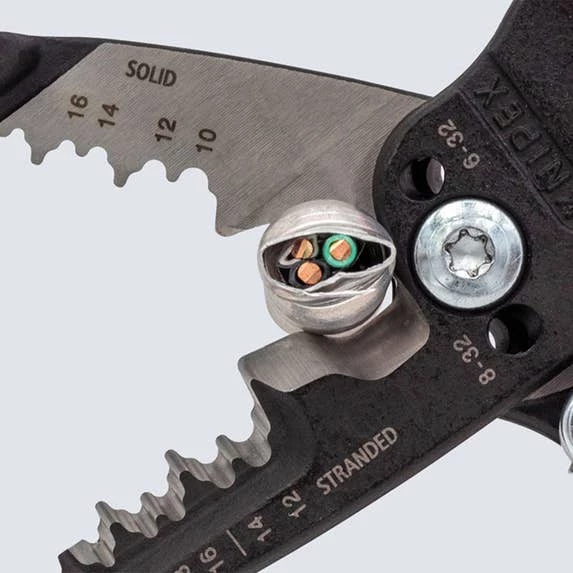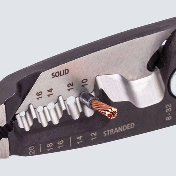 - Strips 10 to 20 AWG – both solid and stranded.