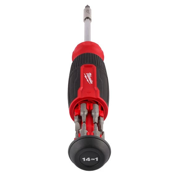 The Milwaukee® 14-in-1 Ratcheting Multi-Bit and 8-in-1 Ratcheting Compact Multi-Bit screwdrivers are the most versatile multi-bit screwdrivers. These multi-bit drivers feature easy-access in-handle storage to keep bits organized, allowing you to quickly change bit sizes and types. The durable, all-metal ratchets allow for higher torque and faster driving. The removable bit holders have 1/4″ hex shanks, making them power tool ready for maximum jobsite versatility. The chrome-plated bit holders provide rust protection and reduce wear from elements on the jobsite. All Milwaukee® Multi-Bit Screwdrivers are backed by Milwaukee’s Limited Lifetime Warranty.