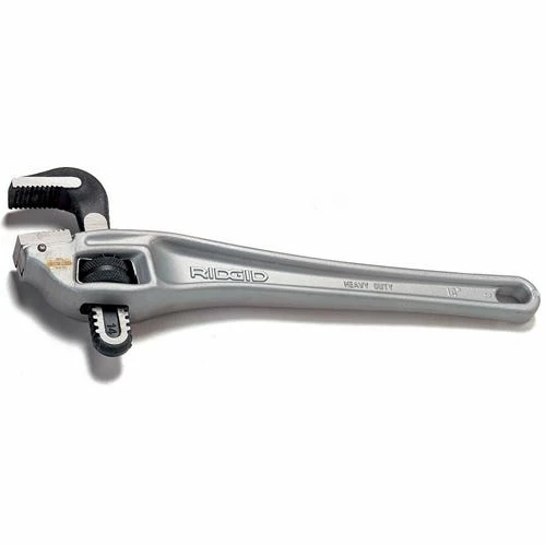 Aluminum Offset Pipe Wrenches feature a jaw opening parallel to the handle and a narrower hook jaw head.