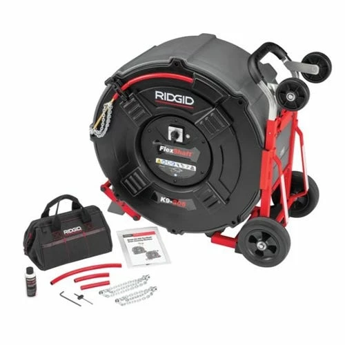 Purpose-built for the professional; the new RIDGID FlexShaft K9-306 quickly clears grease buildup; roots and heavy scale using 125′ of 3/8″ cable for 3″ – 6″ pipes with one step of the foot switch.